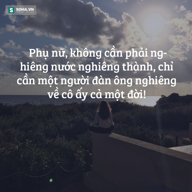 14. Phụ nữ, không cần phải nghiêng nước nghiêng thành, chỉ cần một người đàn ông nghiêng về cô ấy cả một đời!