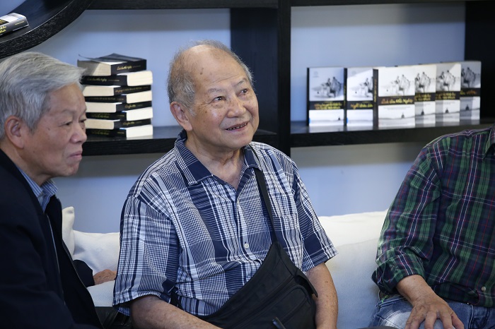 Nhà giáo Phạm Toàn (giữa) cùng các trí thức trong dịp gặp mặt đầu xuân 2019 của Tia Sáng. Ảnh: Hoàng Nam.