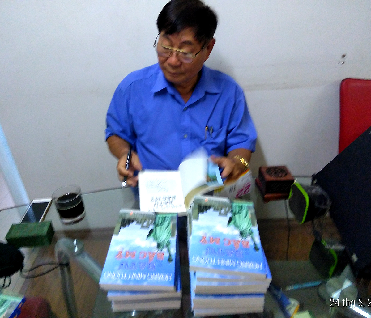 Nhà văn Hoàng Minh Tường ký tặng sách bạn đọc