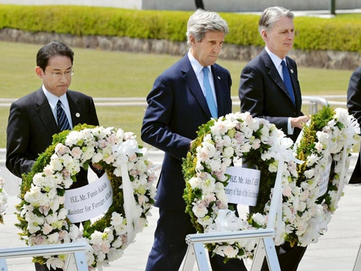 Ngoại trưởng Mỹ John Kerry đặt vòng hoa tại Hiroshima11.4.2016