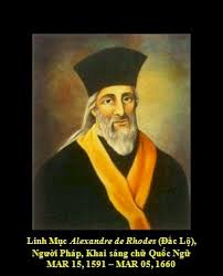 - Alexandre de Rhodes(1591-1660). Trong sử Việt Nam được gọi là Giáo sĩ Đắc Lộ. Ông sinh ở thành phố Avignon-Pháp. Gia đình là dân Do Thái. Ông là nhà truyền giáo Dòng Tên và là nhà ngôn ngữ học. Cha Đắc Lộ đến Hội An-Việt Nam lần đầu tiên là năm 1625. Ông bị Chúa Nguyễn trục xuất khỏi Việt Nam năm 1645.