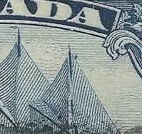 Mẫu tem thể hiện con tàu buồm hai thân Bluenose, niềm tự hào của vùng Nova Scotia – huyền thoại tốc độ của Đại Tây Dương. Bluenose có biến thể nổi tiếng “Man on the Mast” - bóng người đứng trên cột buồm (Hình)