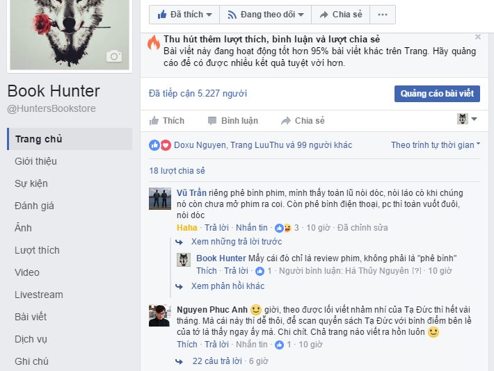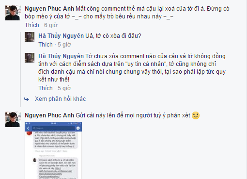 Bằng chứng cho thấy những comment của Phúc Anh không hề bị xóa trên Book Hunter