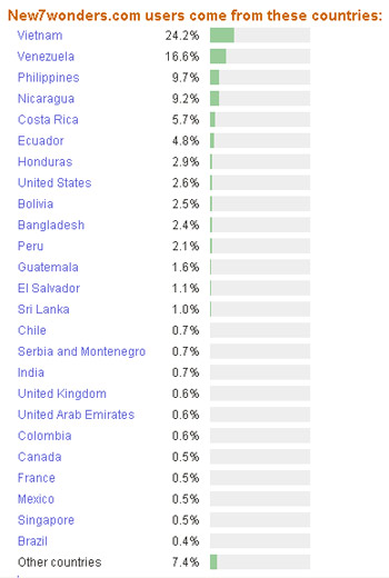 Những thông tin sau có thể gây sốc hơn nữa 23,8% số người truy cập vào trang web này là từ Việt Nam (gần 1/4), trên Việt Nam 1 chút là Costa Rica với 27,6%, ngoài ra không còn nước nào chiếm tỷ lệ trên 10%.