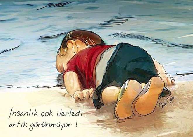 Không lâu sau, họa sĩ khắp thế giới chia sẻ những bức vẽ về bé trai đáng thương đang "nằm ngủ" trên cát, như một cách thể hiện nỗi đau, sự xót xa với em. Các tác phẩm đăng trên Twitter với hashtag #KiyiyaVuranInsanlik, hoặc #HumanityWashedAshore.