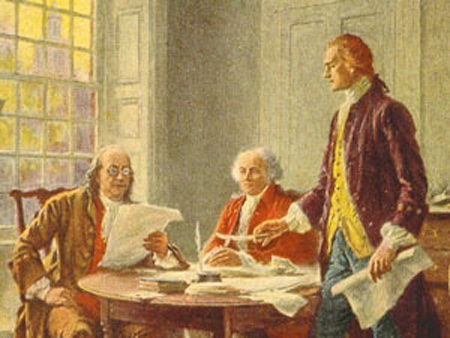 Jefferson xem lại bản nháp Tuyên ngôn Độc lâp với Adams và Franklin.